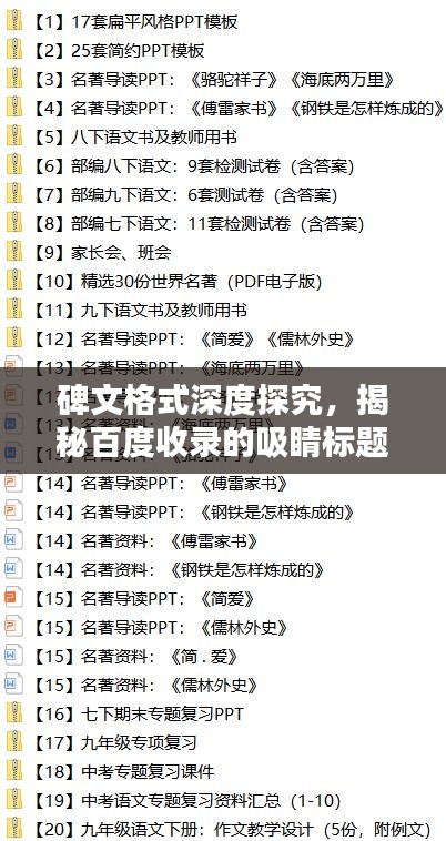 当我们想要了解更多关于碑文格式的信息时,“百度一下”成为我们的首选,通过百度搜索,我们可以找到大量的碑文实例,了解不同地域、不同文化背景下的碑文格式,我们还可以找到专业的文化网站和学术论坛,听取专家学者的讲解和分析,帮助我们更好地理解和把握碑文的格式要求。