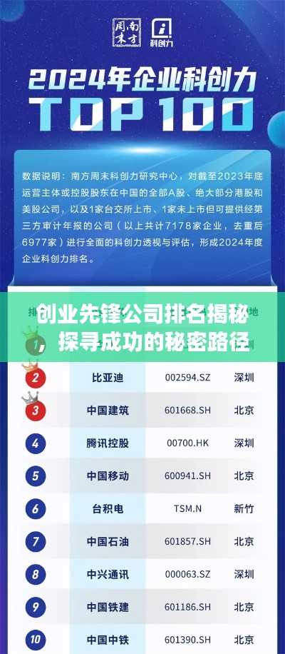 随着科技的不断进步和全球化的加速发展,创业已成为时代的主题,众多公司如雨后春笋般崭露头角,其中创业先锋公司以其独特的创新理念、卓越的产品和服务,引领着行业的发展,本文将为您揭示创业先锋公司的排名及其成功的秘密。