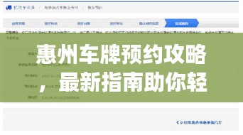 随着惠州市车辆数量的不断增加,车牌预约已成为车主们上牌的必经之路,本文将为您提供最新的惠州车牌预约攻略,帮助您顺利完成车牌预约,节省时间和精力。