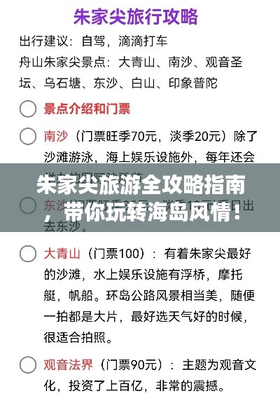 就是关于朱家尖旅游攻略的详细介绍,希望能对您的旅行有所帮助,如需了解更多信息,请访问朱家尖旅游官方网站或咨询当地的旅游机构。
