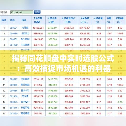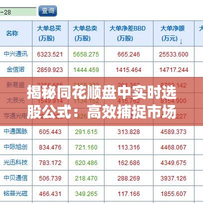标题:揭秘同花顺盘中实时选股公式:高效捕捉市场机遇的利器