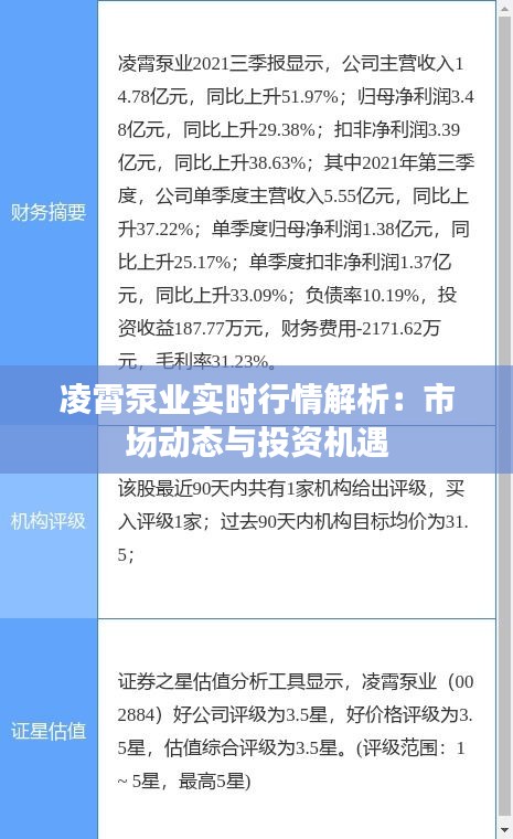 标题:凌霄泵业实时行情解析:市场动态与投资机遇