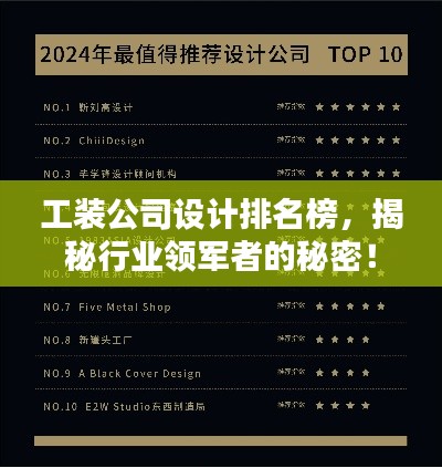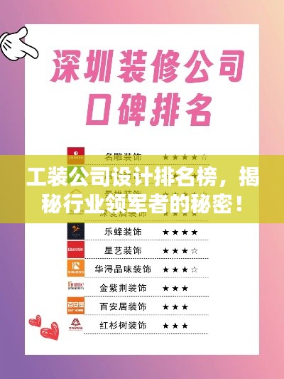 随着市场竞争的加剧,工装公司设计行业的竞争也日益激烈,在众多公司中,有一些公司凭借其卓越的设计能力、精湛的技术水平和优质的服务,脱颖而出,成为行业内排名靠前的公司,这些公司不仅在业界享有良好的口碑,还获得了广大客户的认可。