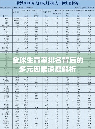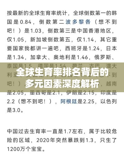 在全球化的今天,各国的发展水平和文化背景差异导致了不同的生育率,本文将围绕“世界生育率排名”这一主题,探讨全球生育率的现状、影响因素以及未来趋势。