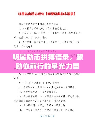 明星们的拼搏语录和励志图片,是我们追求梦想路上的宝贵财富,让我们以他们为榜样,勇敢拼搏,成就自己的人生,在这个充满挑战和机遇的时代,让我们一起努力,共同追求更美好的未来。