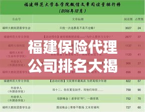 保险行业在中国乃至全球范围内都有着举足轻重的地位,随着经济的发展和人民生活水平的提高,保险业务逐渐渗透到各个领域,福建省作为东南沿海的重要省份,其保险行业也日渐繁荣,本文将探讨福建保险代理公司的排名及相关情况。