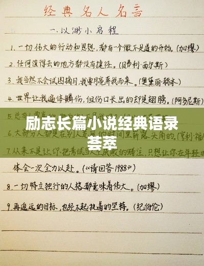 在漫长的岁月长河中,英雄豪杰、智者仁人的事迹被镌刻在历史的篇章里,长篇小说的世界,如同一个五彩斑斓的梦,让我们领略人生的酸甜苦辣,在这些故事中,总有一些励志的语录,如同明灯,照亮我们前行的道路。
