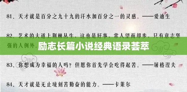 长篇小说中,那些充满励志精神的语录,总能给予我们前行的力量,以下是精选的长篇小说励志语录,希望能激励我们在人生的道路上勇往直前。