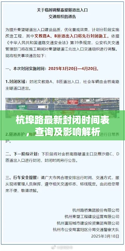 本文为您提供了杭埠路封闭时间表的最新查询及相关影响分析,希望能对您有所帮助,如果您还有其他疑问,请关注相关部门公告或咨询相关部门。