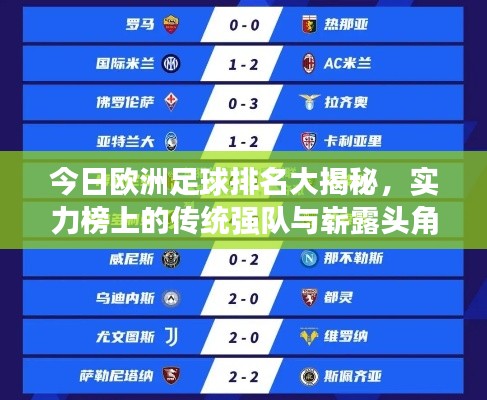 随着欧洲足球的不断发展,各国实力逐渐显现,排名也随之变化,本文将为您带来最新的欧洲足球排名,一起探讨哪些球队在激烈的竞争中脱颖而出,成为实力榜上的强队,哪些新兴势力正在崭露头角。