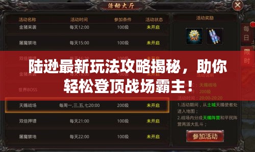 陆逊作为游戏《三国志》系列中的知名武将,一直以来都受到广大玩家的喜爱,随着游戏版本的更新,陆逊的技能和玩法也在不断地变化,本文将为大家带来陆逊的最新玩法攻略,帮助大家更好地掌握这位武将的使用技巧,提升游戏体验。
