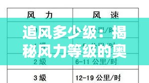 风力等级是描述风的强度的一种标准,它对人类活动、自然环境和气候变化都有着重要的影响,了解风力等级的奥秘,有助于我们更好地应对各种天气现象,保护生态环境,促进社会和谐发展,在追风之旅中,我们不仅是在追逐自然的力量,更是在探索与自然的和谐共处之道。