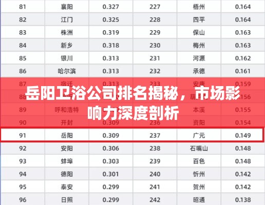 随着城市化进程的加快,卫浴行业得到了迅猛发展,岳阳卫浴公司作为行业的重要一员,其排名及市场影响力备受关注,本文将围绕岳阳卫浴公司的排名展开分析,探讨其在卫浴行业中的地位及未来发展前景。