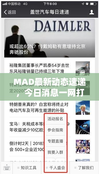 随着科技的不断进步和创新,MAD作为一个引领时尚潮流和科技创新的词汇,越来越受到人们的关注,本文将围绕“MAD今日最新消息”这一主题,为大家带来一系列有关MAD的最新动态和发展趋势。