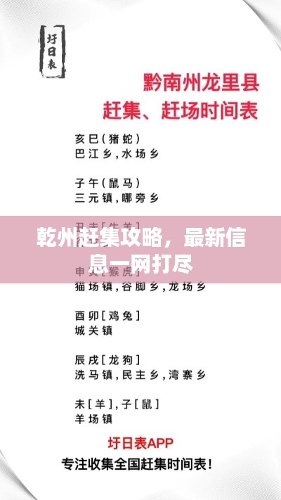 乾州,一个充满历史底蕴与文化魅力的地方,赶集活动在这里历史悠久,深受当地人民的喜爱,本文将为您提供最新的乾州赶集攻略信息,让您在赶集的过程中更加得心应手,尽情享受这一独特的民俗文化。
