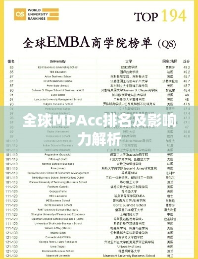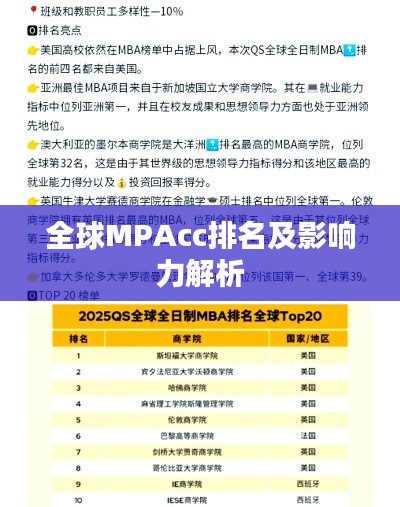 随着全球经济的不断发展和商业环境的日益复杂化,会计作为一门商业语言在全球范围内扮演着至关重要的角色,对于有志于从事会计职业的学生来说,选择一个拥有优秀会计专业的学校成为了他们关注的焦点,而MPAcc(专业会计硕士)的世界排名更是众多学子参考的重要指标之一,本文将详细介绍MPAcc的世界排名及其影响力。