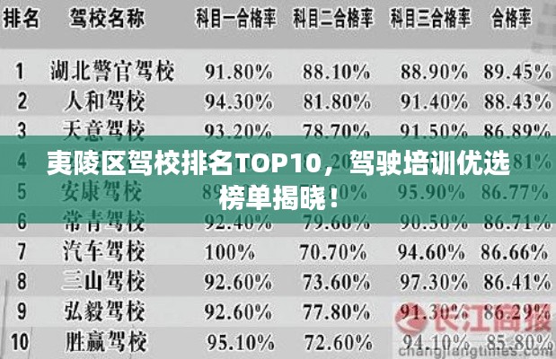 随着驾驶技能的普及,越来越多的人选择参加驾驶培训,在夷陵区,有许多驾校提供驾驶培训服务,但哪些驾校在排名中名列前茅呢?本文将为您介绍夷陵区驾校排名前十名,这些驾校都是驾驶培训的优选之地。