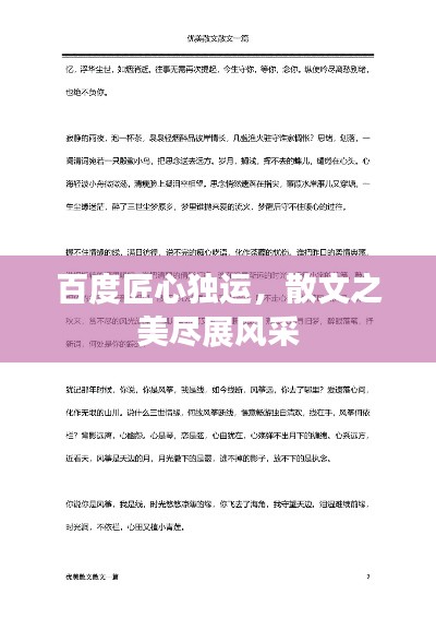 在这个数字化时代,百度已经成为我们获取信息的重要途径,在百度的搜索框中输入“匠心”与“散文”这两个词汇,我们能探寻到的,不仅仅是文字的表面,更是深藏其中的文化与艺术之美。