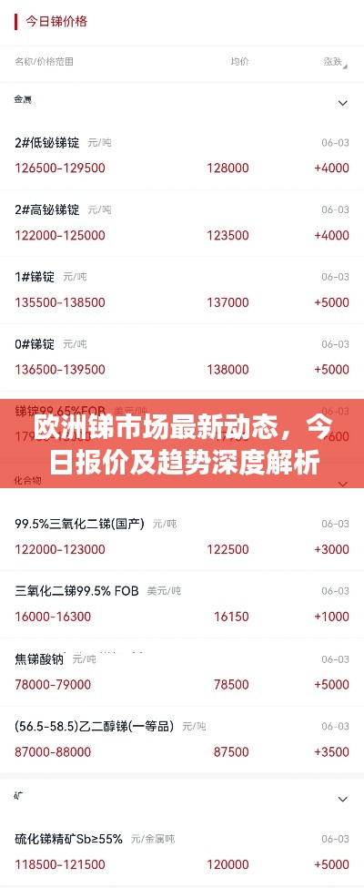 随着全球经济的发展和工业需求的增长,锑作为一种重要的金属元素,其价格动态一直备受关注,本文将重点关注今日欧洲的锑市场,分析其最新报价、市场动态及未来趋势。