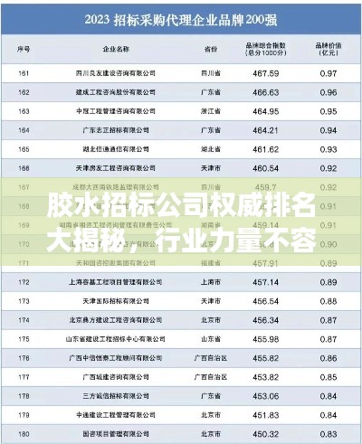 胶水作为日常生活中不可或缺的一种工业用品,广泛应用于建筑、家具、汽车、电子等各个领域,随着市场需求的不断增长,胶水招标公司也应运而生,为各大企业提供了便捷、高效的采购服务,本文将为您揭示胶水招标公司的排名,助您了解行业权威力量。