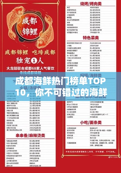成都,这个被誉为天府之国的城市,美食种类繁多,而海鲜更是其中的一大亮点,这里汇聚了各地的海鲜精华,新鲜美味,口感丰富,下面就为您介绍成都海鲜前十名排名,让您轻松找到最受欢迎的海鲜美食。
