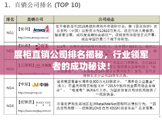 在当今的商业环境中,展柜的需求与日俱增,无论是商场、超市还是博物馆,展柜都是展示商品或艺术品的重要载体,展柜直销公司的兴起,为各行各业提供了便捷高效的采购渠道,本文将为您揭示展柜直销公司的排名,带您了解行业领军者的秘密。