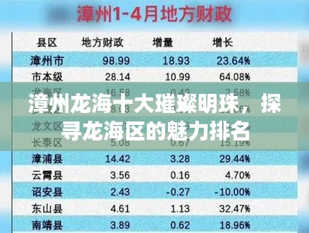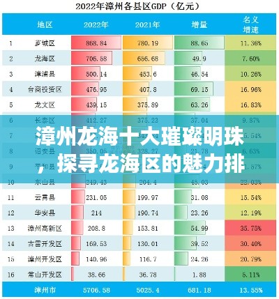 位于福建省漳州市的龙海区,是一颗璀璨的明珠,闪耀着无尽的光芒,这里历史悠久,文化底蕴深厚,同时又充满现代活力,近年来,龙海区的快速发展引人注目,今天我们就来一起探寻一下龙海排名前十名的重要元素,感受这片土地的繁荣与活力。