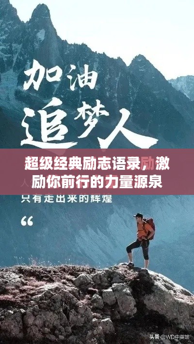 人生就像一杯茶,不会苦一辈子,但总会苦一阵子,只要我们在挫折中磨练出坚强的意志,智慧的头脑,面对人生的挑战,就没有所谓关卡过不了,下面分享一些超级经典的励志语录,让我们一起努力迎接人生的每一个挑战!