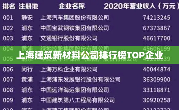 随着城市化进程的加速,建筑业在新材料方面的需求日益增长,上海,这座充满活力和创新精神的城市,已经成为中国乃至全球建筑新材料领域的重要发展中心,本文将为您介绍上海建筑新材料公司的排名,以助您了解这一领域的领军企业。