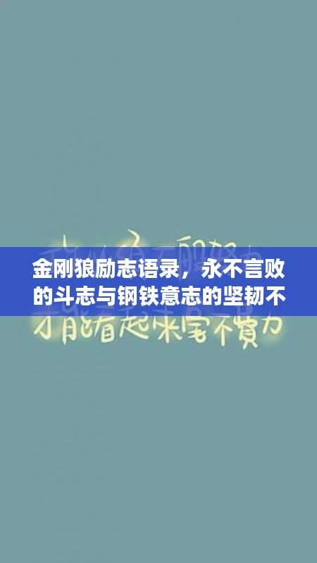 在漫长的人生旅程中,我们都需要一些励志的话语来鼓舞自己,激发内在的潜能和力量,金刚狼这一经典角色,以其不屈不挠的精神和顽强拼搏的勇气,成为了许多人心中的英雄,以下是一些金刚狼励志语录,希望能够激励我们在面对困境时,永不言败,坚韧不拔。