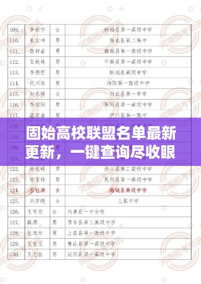 2、搜索引擎查询:通过搜索引擎输入关键词“固始高校联盟名单查询最新”,即可获取相关信息。