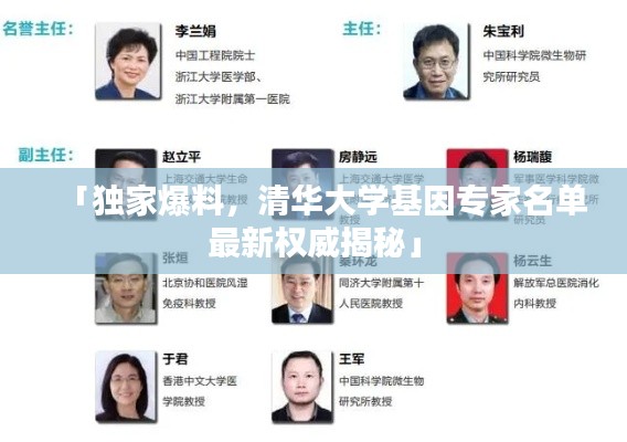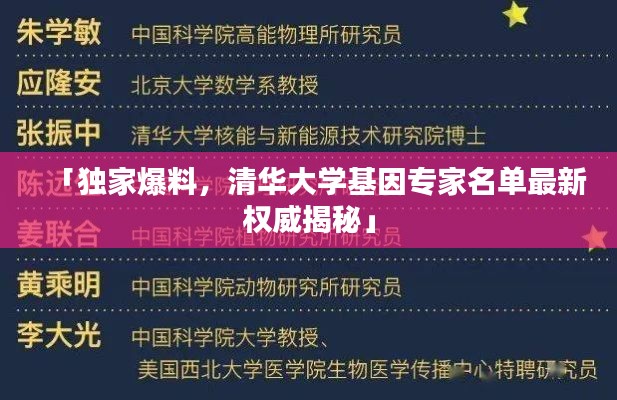 随着基因科学的飞速发展,我国在这一领域的研究已经取得了举世瞩目的成果,清华大学作为我国顶尖的高等学府,其在基因研究领域的贡献尤为突出,本文将为您揭示清华大学基因专家名单最新情况,带您了解这些领军人物的学术成就与研究方向。