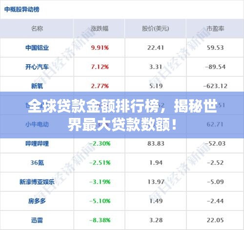 随着全球经济的发展,金融机构的贷款业务日益繁荣,各种规模的贷款金额层出不穷,本文将为您揭示世界最大贷款金额排名,带您了解全球金融领域中的大手笔交易。