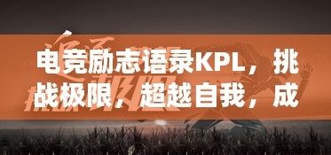 随着科技的飞速发展和互联网的普及,电子竞技(电竞)已经成为一种全球性的竞技运动,吸引了越来越多的年轻人投身其中,在电竞领域,KPL(王者荣耀职业联赛)作为顶尖赛事之一,更是激发了无数玩家的激情与梦想,在KPL的赛场上,有着许多励志的语录,激励着选手们不断挑战极限,超越自我。