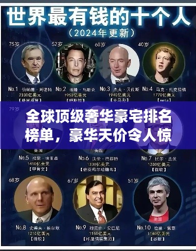身为全球最富有的人群,他们的住宅自然是奢华至极,在这篇文章中,我们将探索世界顶级最贵豪宅的排名,揭示这些令人惊叹的房地产项目的独特魅力和豪华程度。
