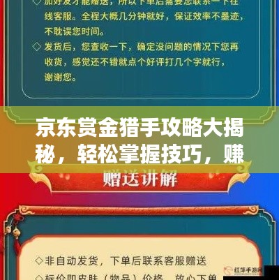 随着电子商务的飞速发展,越来越多的人开始关注网络赚钱的方式,京东赏金猎手作为一种新兴的网络赚钱途径,吸引了大量用户的关注,本文将为大家分享京东赏金猎手的最新攻略,帮助大家掌握技巧,轻松赚取丰厚奖励。