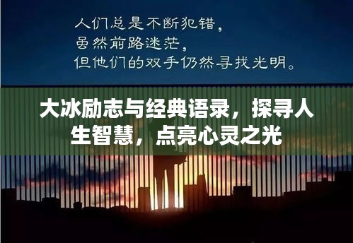 大冰,一位深受年轻人喜爱的作家、行者、民谣歌手,他的励志语录和经典语录中蕴含着丰富的人生智慧和积极向上的力量,本文将从大冰的经典语录中汲取养分,分享他对人生的独到见解,以期激发我们的斗志,启迪我们的人生。