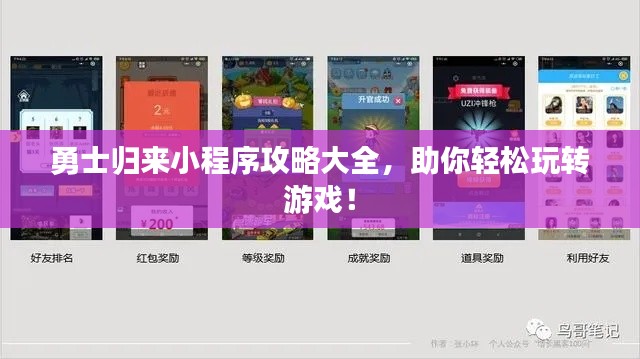勇士归来小程序作为一款精彩的游戏,吸引了众多玩家的加入,本攻略旨在为玩家提供最新的攻略和技巧,帮助玩家更好地体验游戏,希望广大玩家能够根据自己的实际情况,灵活运用本攻略中的方法,提高自己的游戏体验。