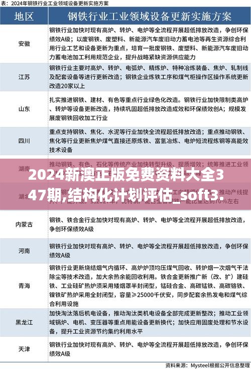 随着全球数字化转型的加速,对于政策文件的高效管理与传播变得尤为重要。2024年,我们特别推出了《2024新澳正版免费资料大全347期: 结构化计划评估_soft3.851》,旨在为澳门市民及政策执行者提供一个全面的、正版免费的政策资料库。本文将详细解读本资料大全的构成、重要性及价值所在,助力信息时代中政策文件的精准传达与执行。