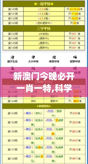在今日快速变化与日新月异的时代背景下,澳门特别行政区的政策更新与发布工作继往开来,不断推陈出新。本期我们将重点关注澳门最新政策动态,特以“新澳门今晚必开一肖一特,科学评估解析_1080p5.395”为主题,为广大市民及关注者带来政策解读与科学评估的深度解析。