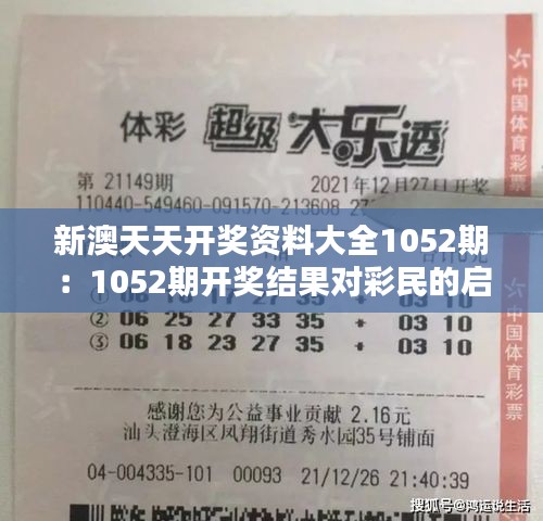新澳天天开奖,作为澳门地区广受关注的彩票游戏之一,每期的开奖结果无疑对投注者具有重要的参考价值。1052期的开奖结果不仅是一串数字和幸运者的诞生,更深层次地反映了彩民的投注心理和市场趋势。本文将对1052期开奖结果进行详细解读,旨在为彩民朋友们提供更为深入的分析和启示。