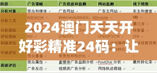 在澳门这个充满活力和创新的城市,我们的数字游戏产业一直是娱乐和经济多元化的重要支柱。为了进一步推动这一领域的繁荣,我们很高兴地宣布推出"2024澳门天天开好彩精准24码"项目,旨在提升玩家的游戏体验,增强透明度,并确保公平性和趣味性。接下来,我们将深入探讨这一项目所带来的革命性变化及其对澳门数字游戏生态的深远影响。