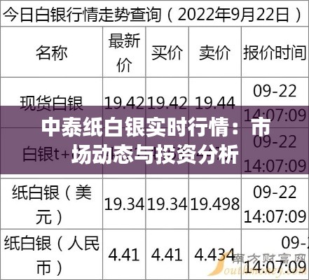 纸白银作为一种投资品种,近年来受到了越来越多投资者的关注。中泰纸白银作为市场中的一员,其实时行情的波动往往能反映出市场的整体趋势。本文将深入分析中泰纸白银的实时行情,探讨其市场动态和投资策略。