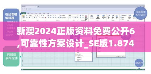 “新澳2024正版资料免费公开6”是一项旨在提升澳门政府信息公开透明度和可靠性的重大政策举措,通过“可靠性方案设计_SE版1.874”的贯彻执行,能够确保澳门市民和投资者获取权威、安全、可靠的官方资料,进一步推动澳门社会的和谐与经济的繁荣发展。
