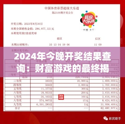 "2024年今晚开奖结果查询:财富游戏的最终揭晓"不仅仅是一场财富的分配,它更是对社会公平正义和法治精神的坚守。开奖结果的公正性和及时性是保证整个财富游戏体系健康发展的关键。因此,确保开奖过程的透明化和结果的公开性对于营造健康、积极的社会氛围至关重要。