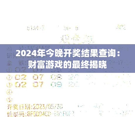 转载请注明来自武汉厨博士餐饮管理有限公司,本文标题:《2024年今晚开奖结果查询:财富游戏的最终揭晓》