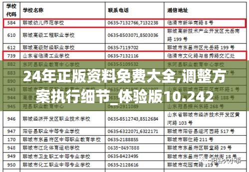 “24年正版资料免费大全,调整方案执行细节_体验版10.242”是一个全方位的正版资料免费获取平台。该平台覆盖了文学、艺术、科学、技术等多个领域,旨在促进知识的自由流通和版权的合理利用。项目预计在接下来的两年时间内逐步完善,最终实现所有澳门市民都能够免费获得高质量的正版资料。