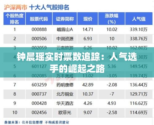 钟晨瑶的实时票数一直是粉丝们关注的焦点。以下是她近期在选秀节目中的实时票数情况: