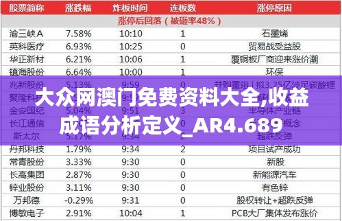 在这个信息爆炸的时代,获取高质量的资料成为了众多用户的需求。“大众网澳门免费资料大全”正是基于这一背景应运而生,为广大用户提供免费的、全面的澳门相关资料,致力于帮助公众更好地了解澳门的社会、经济、文化等方面。本文将对“大众网澳门免费资料大全,收益成语分析定义_AR4.689”进行详细解读,以期为广大用户提供一份详尽的资料和参考指南。