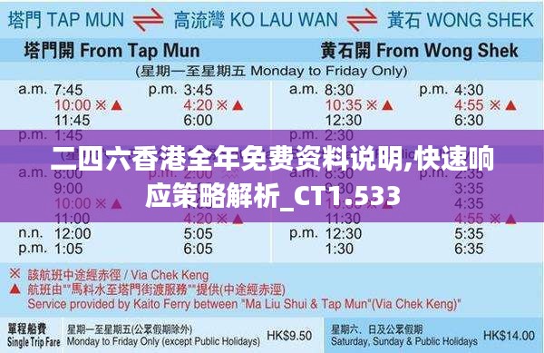 在全球化和区域合作不断加深的今天,澳门特别行政区紧跟时代步伐,致力于推动政策创新和服务升级,以满足广大居民和投资者的需求,加快地区经济的发展。本文旨在详细介绍「二四六香港全年免费资料说明,快速响应策略解析_CT1.533」政策文件,确保社会各界对此有全面而深入的了解。